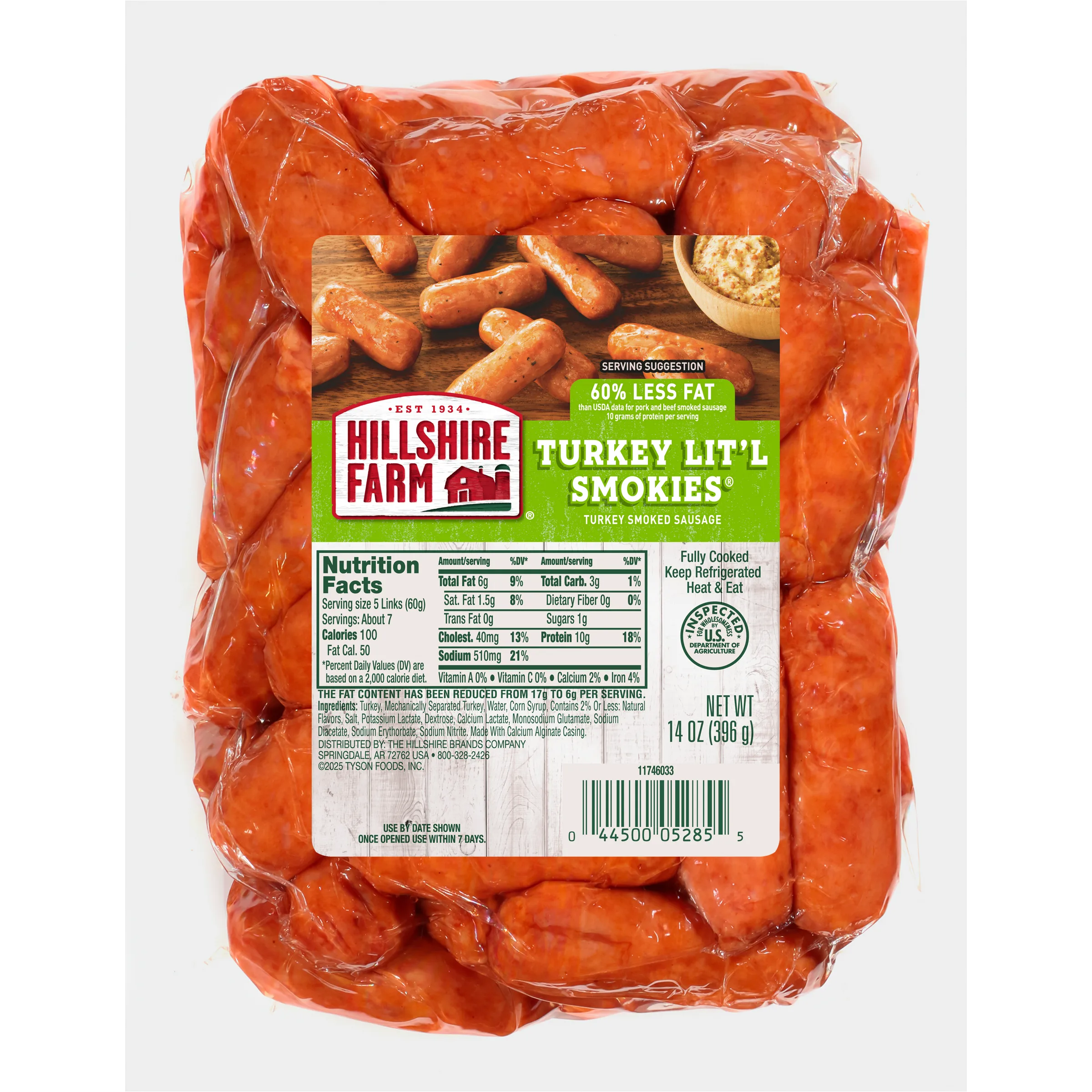 Whether you’re crafting an appetizer for a party or looking for a savory bite to eat, Hillshire Farm Lit’l Smokies Smoked Sausages are the perfect snack. Perfectly seasoned and smoked to perfection, these delicious sausages are fully cooked, ready in minutes and bursting with flavor. For a fun, crowd pleasing snack the whole family can enjoy, serve these delicious sausages with your favorite dipping sauce or wrap in a puff pastry and bake. Includes one 14 oz package of Hillshire Farm Lit'l Smokies Smoked Sausage. Hard work. Dedication. Integrity. These are the values we live by—and the ingredients we put into every package of Hillshire Farm Smoked Sausages. Since 1934, the Hillshire Farm Brand has stood for the honest, carefully crafted meats your family loves, made with the ingredients they deserve. And we’re confident you’ll taste our commitment to quality in every bite.